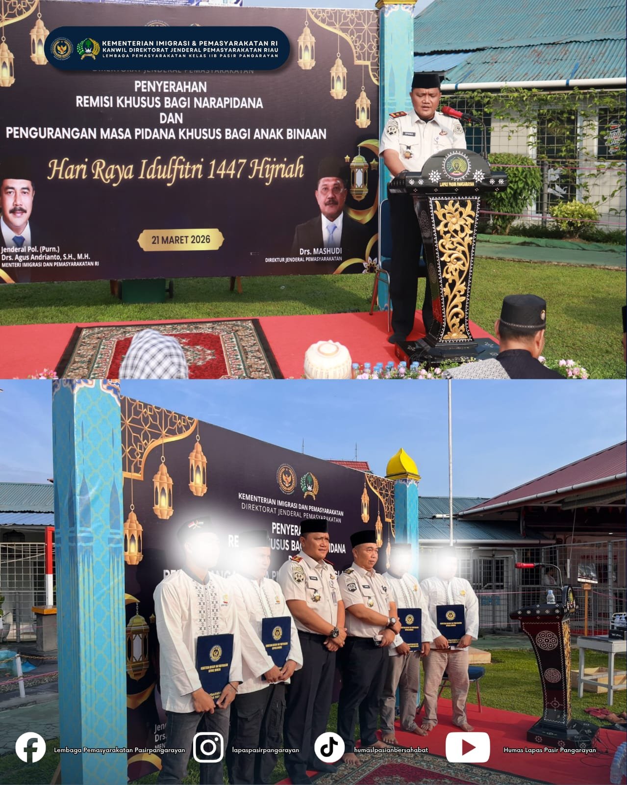 Kegiatan penyerahan remisi tersebut dilaksanakan pada Hari Raya Idul Fitri dan dirangkaikan langsung dengan pelaksanaan Shalat Id di lingkungan Lapas Pasir Pangarayan. Suasana berlangsung khidmat dan penuh haru, dengan diikuti seluruh warga binaan dan petugas lapas.