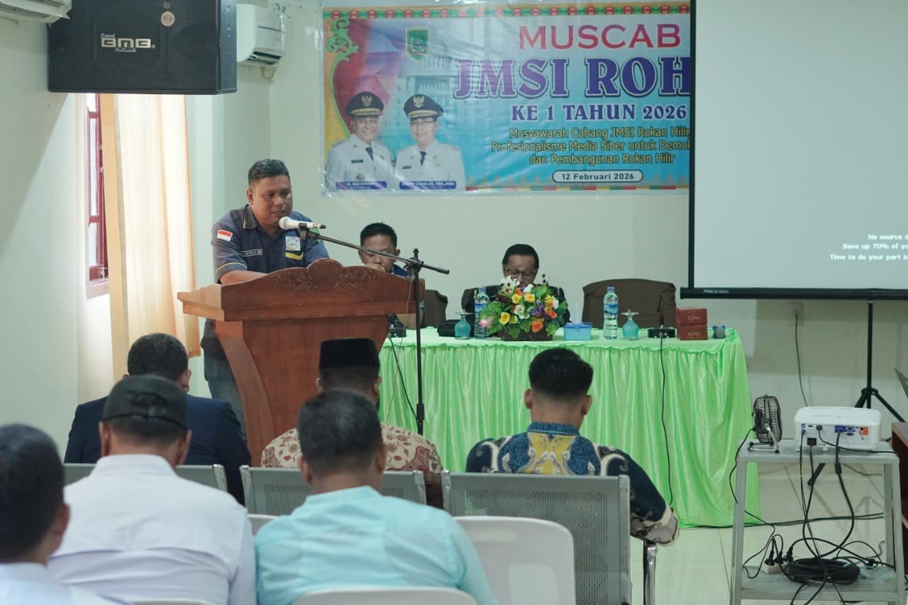 Leadership.co.id Rokan Hilir, Riau | Jaringan Media Siber Indonesia (JMSI) Kabupaten Rokan Hilir (Rohil), Provinsi Riau menggelar acara Musyawarah Cabang atau Muscab ke-1 tahun 2026 yang dilaksanakan di salah satu hotel di Bagansiapiapi pada Kamis (12/2/2026).