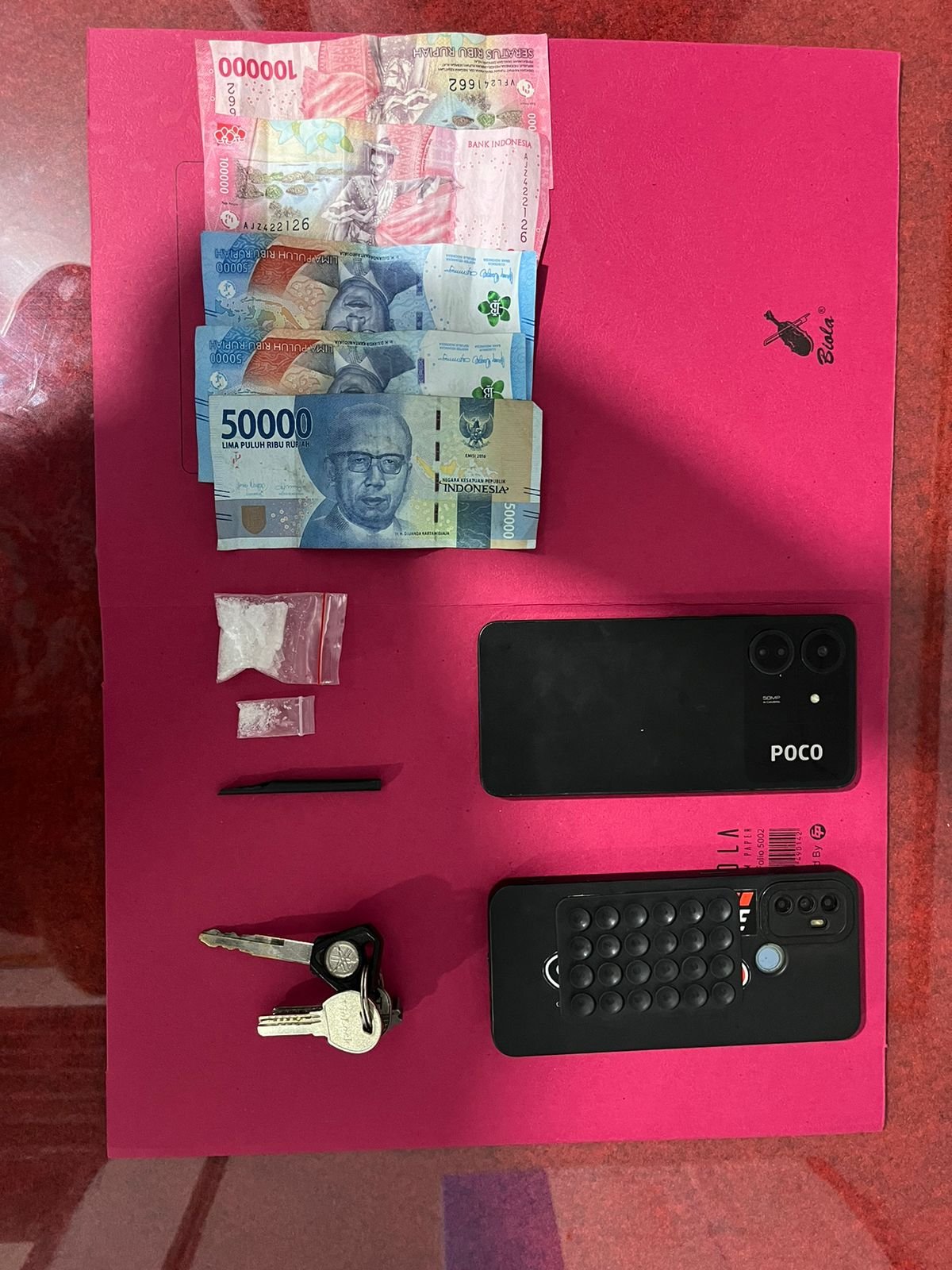 Dari tangan kedua tersangka, polisi mengamankan sejumlah barang bukti, antara lain dua paket sabu dengan total berat kotor 4,60 gram, beberapa unit telepon genggam, alat takar sabu, uang tunai dengan total lebih dari Rp 1,8 juta yang diduga hasil transaksi narkotika, serta satu unit sepeda motor.